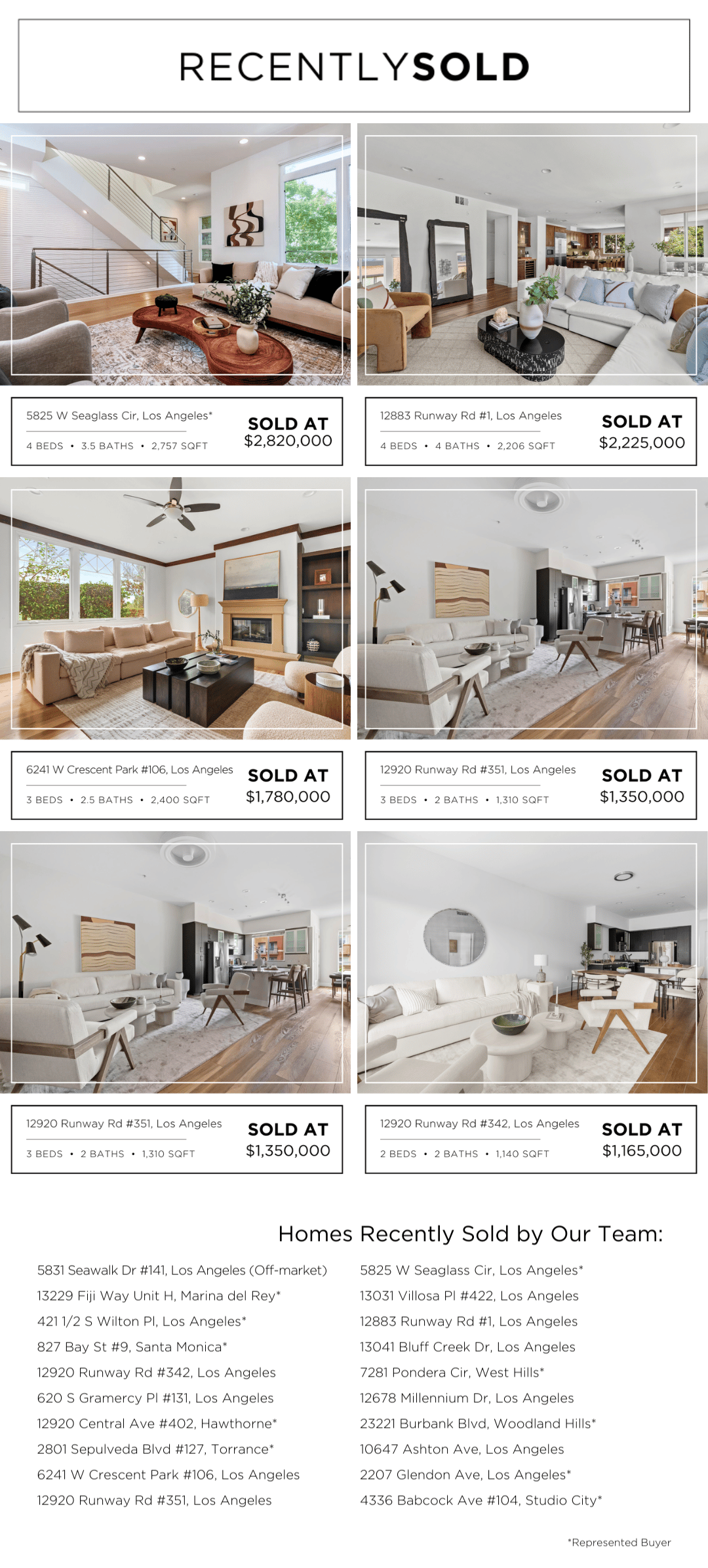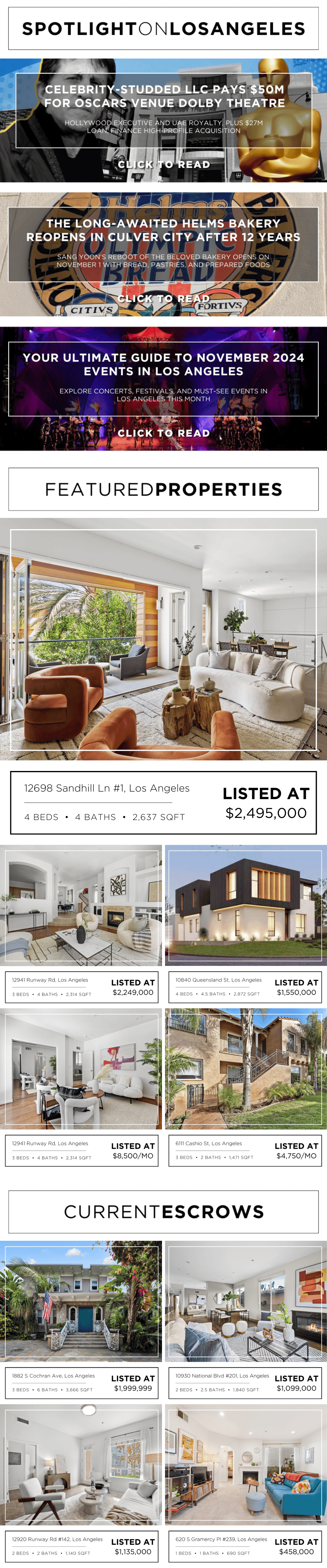October was an exciting month for both our clients and team. Many of our clients took advantage of the lower mortgage rates and closed or locked in their properties prior to rates increasing during the past 6 weeks. Many in Los Angeles also took advantage of the increased inventory and made smart real estate investments leading to a 10.5% increase in the number of homes sold from September 2024 to October 2024 per the MLS. This has been the first percentage increase for the past five months. However, there is some uncertainty as we enter November with mortgage rates increasing to 6.79% this week for the 30-year fixed mortgage per Freddie Mac. Even with inventory in Los Angeles increasing 11.2% from September 2024 to October 2024 per the MLS, we expect some buyers may feel hesitant to purchase until they see the effects of the Fed’s November 07, 2024 rate cut. As we all begin leaning into the cozy holiday season, we do anticipate the number of homes sold to decrease, but that does not mean there are not great real estate deals to be found. You can always rely on us, the hardest working team in real estate, to guide you every step of the way during every month of the year.